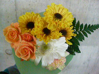 これは買った花束。このスプレーマムが気にいったのです。確かバイキングでしたっけ。聞いたか火星好きの野郎共!マストバイだぞ!もちろん火星好きのお嬢様も購入必至ですよ。火星好きじゃないお嬢様には僕がプレゼント差し上げしますので好きになってください。体重が38%になる絶好の機会ですよ。