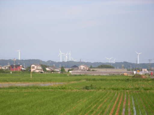 こちらは上の写真に写るハウスの向こう側の景色です。林立する風車がぐるぐると回る様はミヨシの美人(客観的事実)営業の齊藤さんをして「ラピュタみたい」と言わしめた程です。意外なところで旭の魅力を知ってしまったジブリファンなガーベラ生産者の方は今すぐうちをでて旭を目指すと良いと思います。