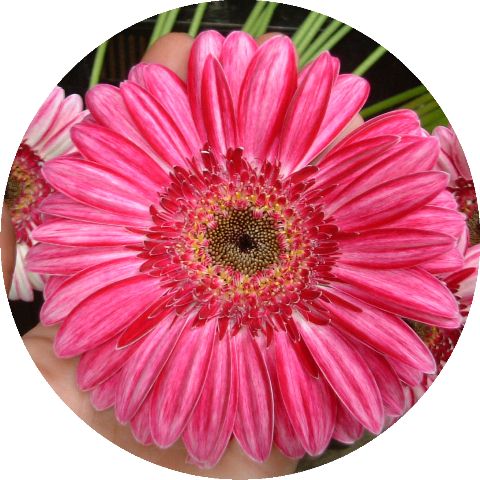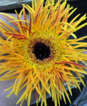 それでもやっぱり白の芯黒ガーベラはキレイだな、と上機嫌で眺められるデティ。