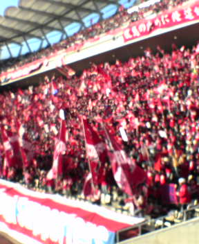 こりゃもう優勝戦線離脱か…と思ったサポは多かったようで、実際0-2になった時点で席を立つ人多数。ガンバ●、セレッソ△で際どくも踏みとどまったのは嬉しいけれど、こんな喜び方はもうしたくない。応援する方も諦めないので、時節こそは必ず勝っていただきたい。