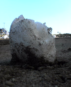 日陰に見つけた、どこかの子供達が作った雪だるまの残骸。